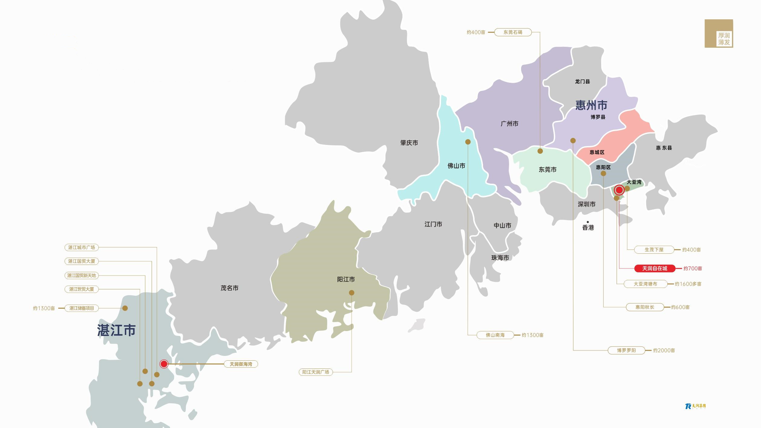 天潤集團憑借對現(xiàn)代城市人居生活的深刻理解,以及對商業(yè)地產(chǎn)的獨特嗅覺,以驚人的魄力,大手筆開拓湛江商業(yè)地產(chǎn)。在二十一世紀(jì)初,相繼在湛江開發(fā)了國貿(mào)大廈、世貿(mào)大廈、城市廣場、國貿(mào)新天地數(shù)碼港等城市標(biāo)志性項目,打造了粵西地區(qū)最具價值的城市商業(yè)圈,實現(xiàn)了與這座城市共生共榮的夢想。2007年,天潤開始走出粵西,布局全國,沈陽天潤廣場建成,信陽天潤廣場,陽江天潤廣場相繼開業(yè)。天潤集團旗下8座綜合性商業(yè)大廈,均位于當(dāng)?shù)胤比A地帶,總建筑面積達70多萬平方米。