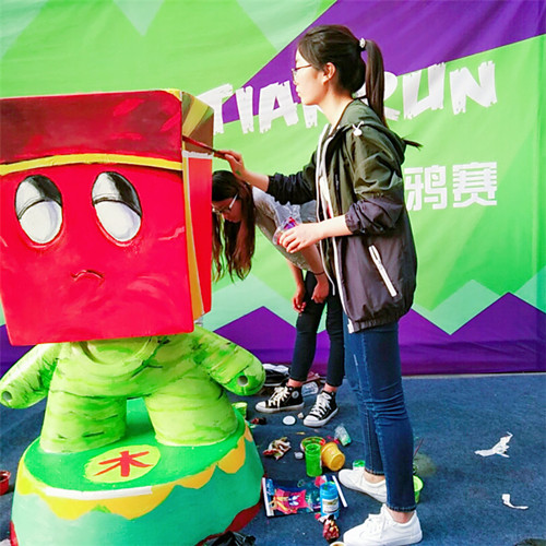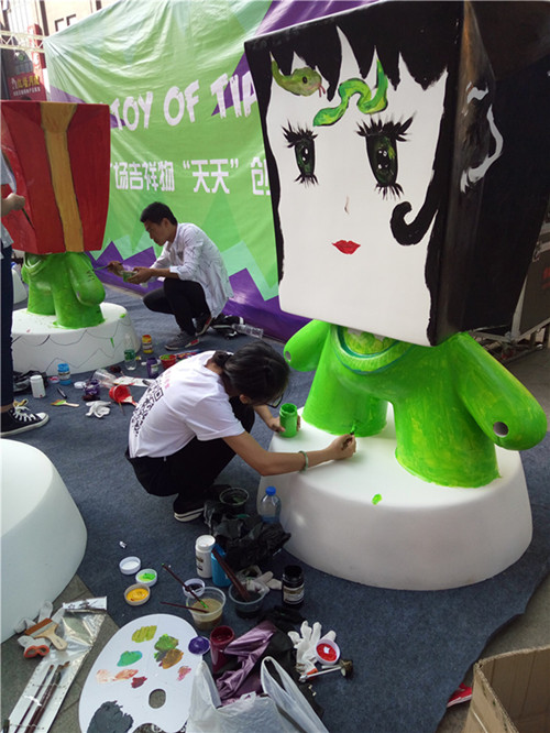 以“年輕、健康、活力、全新”為主題,信陽天潤(rùn)廣場(chǎng)推出5周年店慶吉祥公仔“天天”,并在店慶當(dāng)天舉辦了吉祥公仔藝術(shù)涂鴉展活動(dòng)。