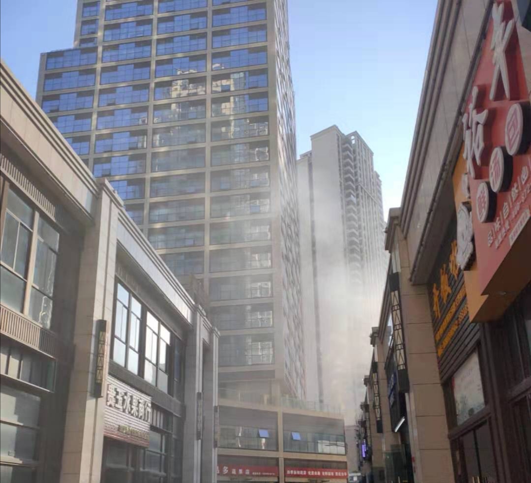 16:00點,消防演習正式開始,此次演習分別在3棟7層、11棟3層平臺外各設(shè)立一個模擬發(fā)生火災險情場景。