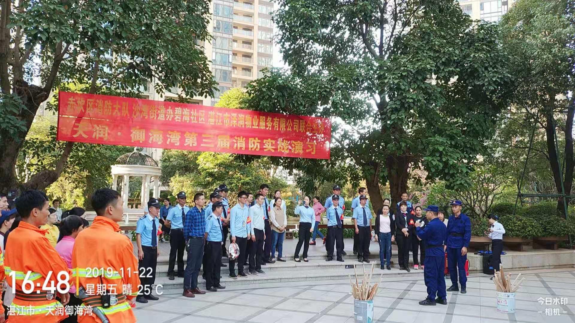 2019年11月22日,澤潤物業(yè)與赤坎區(qū)消防大隊、沙灣街道辦聯(lián)合舉辦御海灣第三屆消防實戰(zhàn)演習,集團公司領(lǐng)導、地產(chǎn)公司領(lǐng)導參與及指導本次演習工作。
